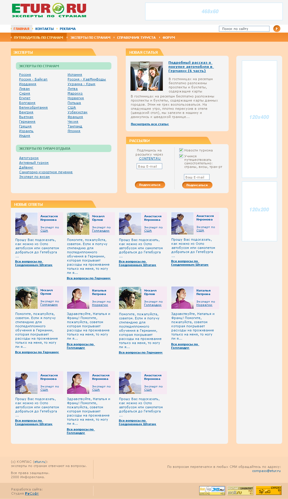 Ñàéò ETUR.RU – ÝÊÑÏÅÐÒÛ ÏÎ ÑÒÐÀÍÀÌ, áûë ïðèäóìàí Âîðîøèëîâîé Èðèíîé åùå â 2000 ãîäó, à â 2001 ãîäó óæå çàðàáîòàë è ïåðâûå ýêñïåðòû ñòàëè îòâå÷àòü íà âîïðîñû ïîëüçîâàòåëåé.